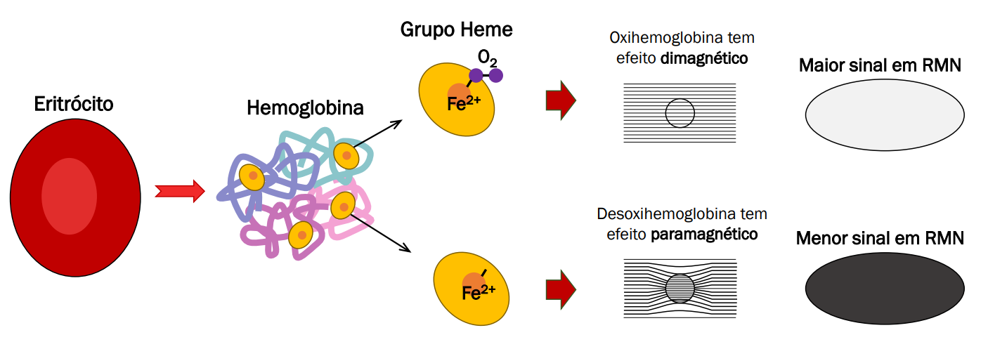 Developed by Seiji Ogawa in 1990. The concept behind fMRI is that of measuring brain activity by measuring changes in blood flow. This can be achieved by the different magnetic properties of hemoglobin when bound to oxygen and when unbounded. This is due to the fact that oxygen surrounds the iron molecule and interferes with its attraction to the magnetic field created by the machine. The ratio between oxyhemoglobin and hemoglobin at any point determines the Blood Oxygenation Level Dependent (BOLD) signal, which represents 1 voxel (~3x3x3 mm).